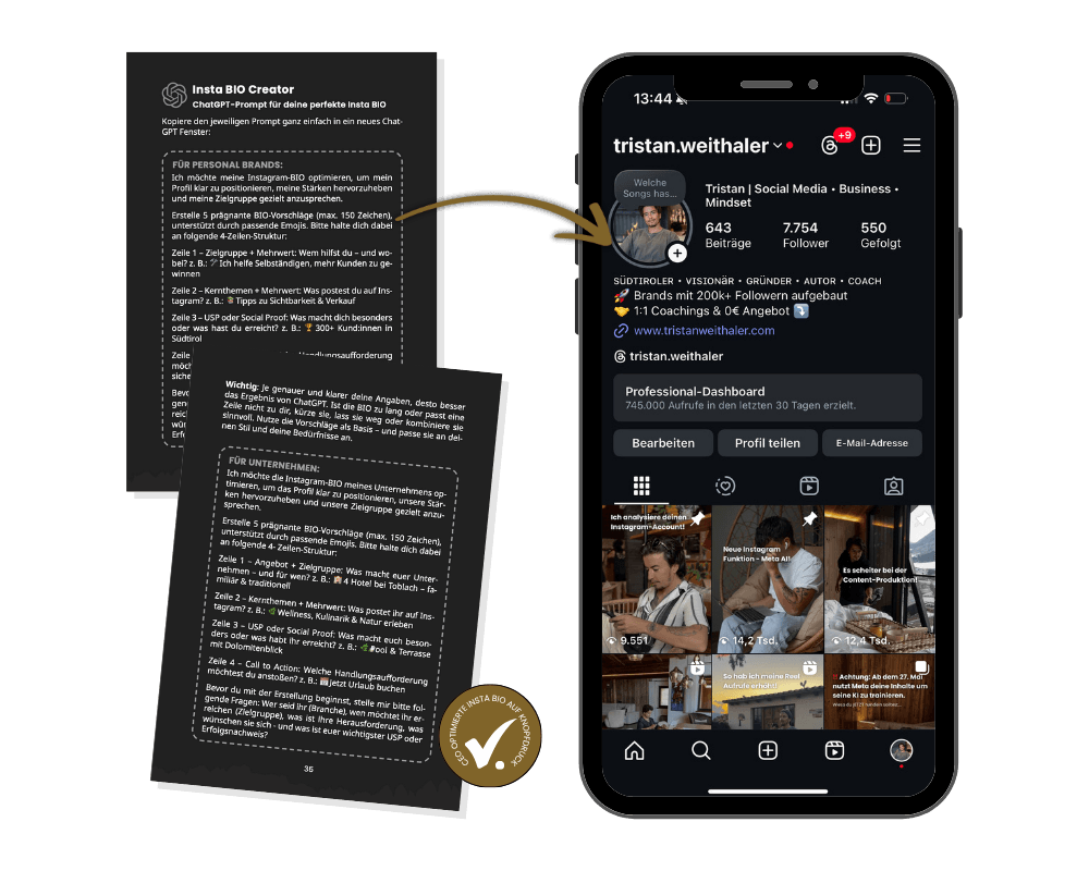 Vorgefertigter ChatGPT-Prompt für deine perfekte Instagram BIO